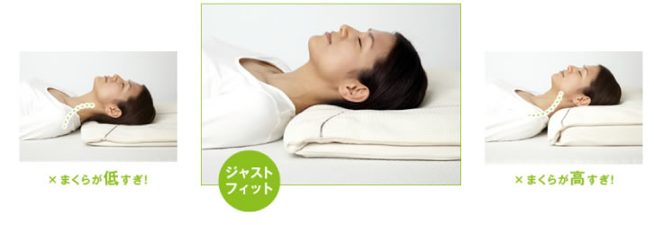 それは、理想的な寝た時の姿勢を保つためです。理想的な寝た時の姿勢とは、自然 に立った状態の姿勢をそのまま寝かした状態のことです。 バスタオルをたたんで寝ている方もいるかと思いますが、仰向きで寝た時は合って いても横向きでは合っていないことがほとんどです。 枕が低すぎても首が落ちてしまいますし、反対に高すぎても頸椎が前屈するので気 道が閉塞する危険性があります。 睡眠時に、正しい姿勢を保つことで首の筋肉の緊張を和らげ、ストレス軽減にも繋 がります。